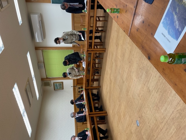 最初に組合役員の人から施設の概要について説明を受け、その後木材が集積されている土場を見学させていただきました。